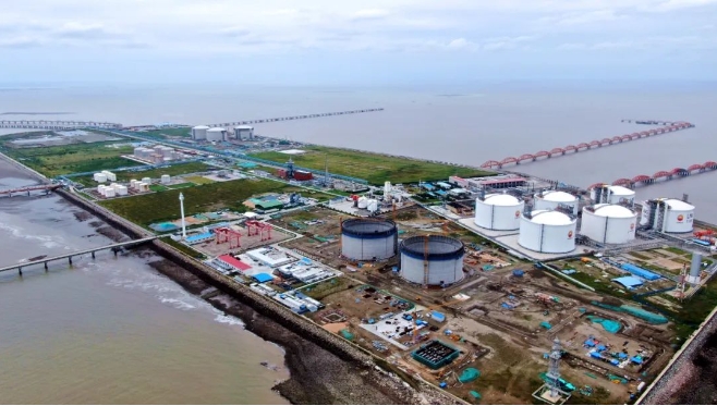 中石油江苏LNG接收站是与协鑫LNG共用卸船码头的另外一家业主单位,与协鑫LNG南北相邻,隔墙相望。
